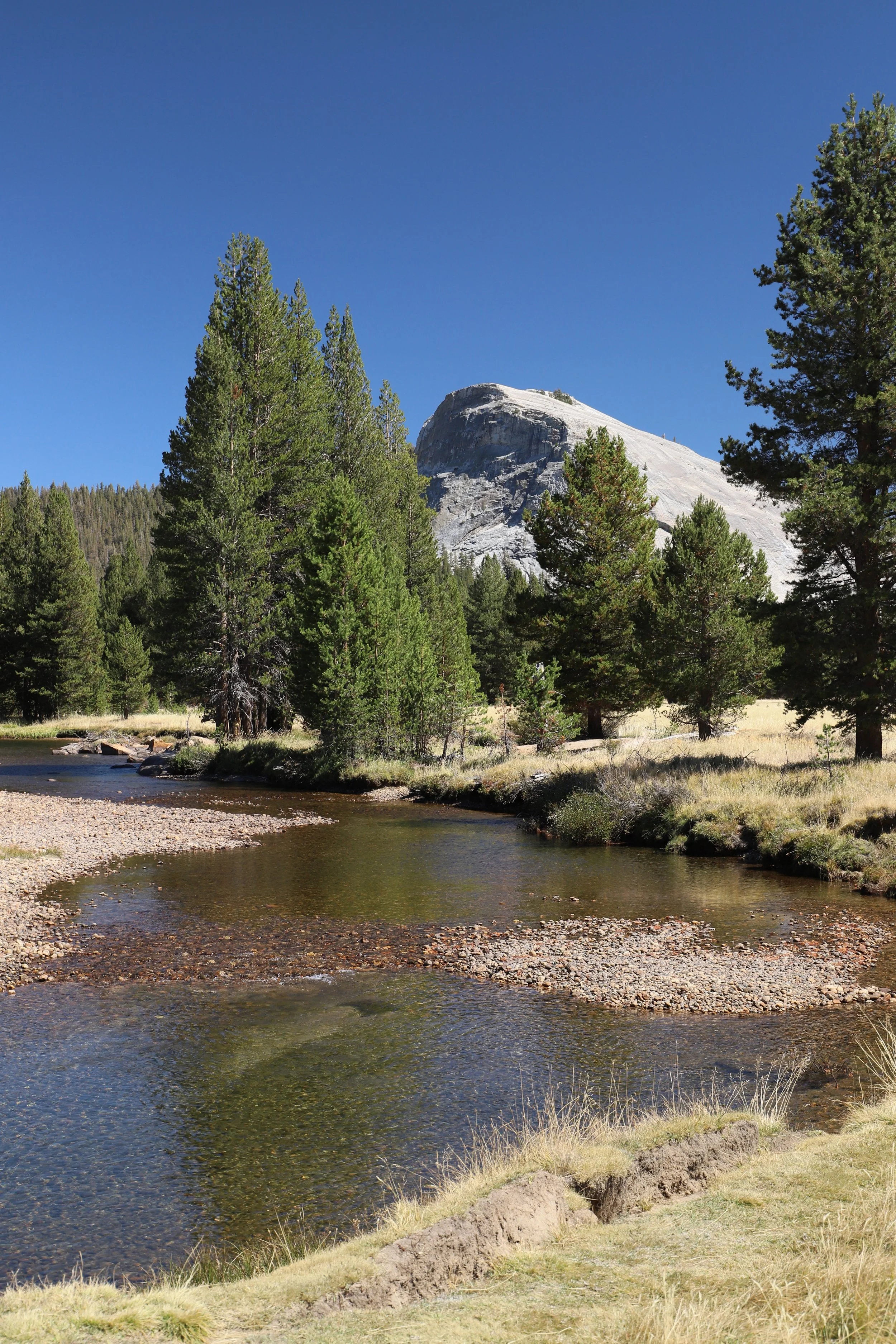 On Saturday I was given permission from the fam to fuck off and ride Tioga Road. Being inside the park made this awesome and super simple. I left the campsite at 9 am, was down in the valley by 10 having seen very few cars, and made it to the end by Mono Lake before noon. The lack of cars made the ride very satisfying but didn’t help the want to go fast. The only thing I hit was a sizeable rock hiding in the shadow at the end of a turn but thankfully kept everything upright. I ate my lunch sandwich by Tioga Lake, taking in the views, before heading back towards the camp site. I did get stuck behind a convoy of 20~30 harleys doing 30mph soon after my lunch so I stopped for a short hike in the Tuolumne meadows to check out some soda springs. I made it back to the RV a few hours before the fam who were still climbing/hiking so I walked over to the river by the RV to snap a few pics. I also did a lot of just lounging around.