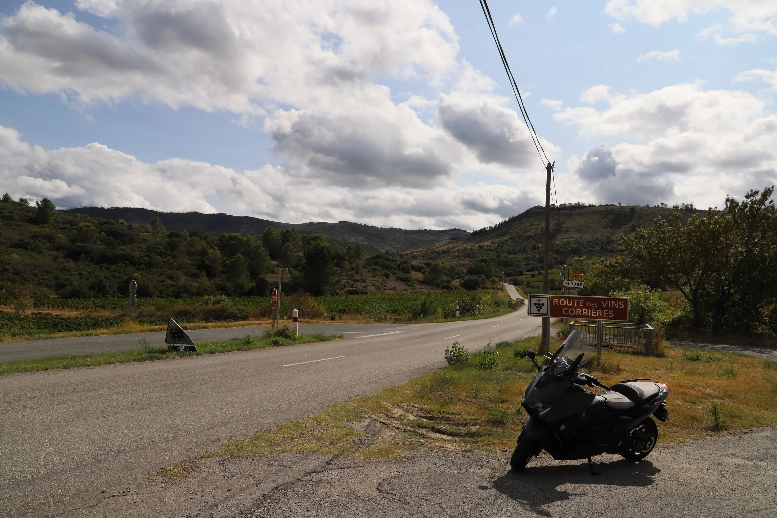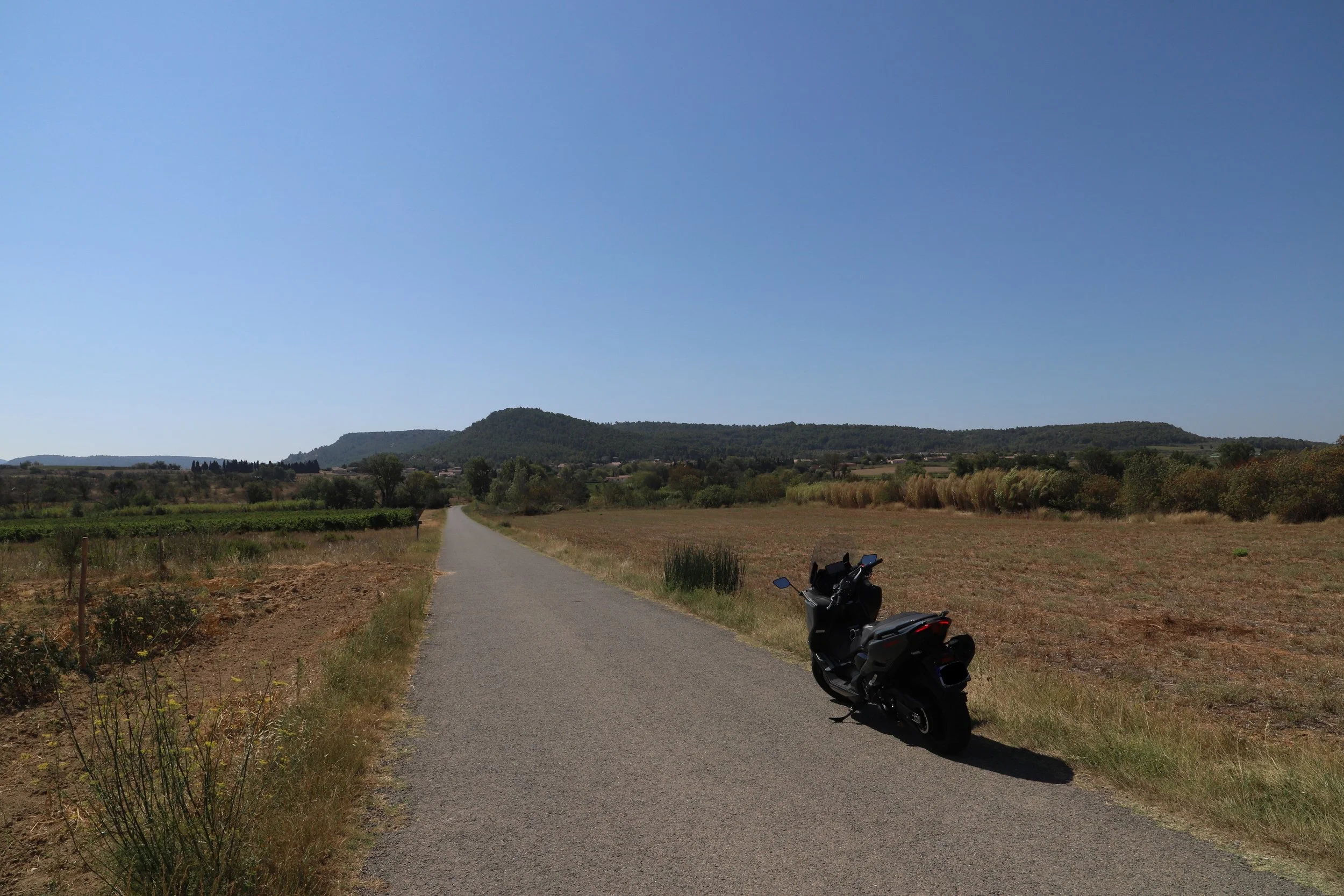 Toulouse and Port La Nouvelle are only a 2 hour car drive away but my uncle lent me his Yamaha “Scooter” so I took a more scenic route, going through some of the Corbieres region. The roads varied from rolling hills full of farmlands and small woods all the way to some nice twisties in these small canyons. The first ride going to the beach was brutal since the heatwave was still blasting southern France in 40ºC temps. I had to stop every 30~60 minutes to drink and try to cool down. The second ride coming back to Toulouse was much nicer since it was only 25ºC this time and there were clouds and a nice breeze.
